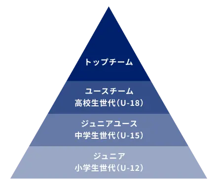 その後、子どもたちの成長に併せて、中学生年代がプレーするジュニアユース、高校生年代がプレーするユースと、一つずつ下から上にクラブの強化のピラミッドを築き上げていきました。そして、1989年に、年齢制限のない社会人がプレーするFC町田トップチームが誕生し、FC町田のピラミッドは完成しました。